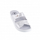 Женские анатомические пантолеты D-02 - легкая, яркая и очень удобная модель золотисто-серого цвета для повседневного ношения и долгих прогулок в теплое время года. Две липучки плотно фиксируют обувь на ноге и обеспечивают полное раскрытие, позволяя легко снимать и надевать обувь.