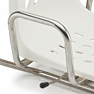 Сиденье изготовлено из высокопрочного пластика, который легко поддерживать в чистоте, а специально продуманная перфорация не задерживает смываемую с тела воду на поверхности кресла. Наличие поворотного механизма облегчит процесс усаживания, а трубчатый алюминиевый каркас не подвержен коррозии под воздействием воды.